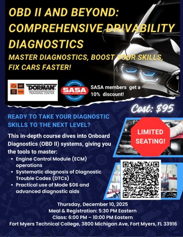 As a member, you gain access to SASA’s network of industry-leading trainers and educators who can keep you ahead of the curve. Monthly webinars and special topics cover areas of interest to both mechanical and collision shops, and SASA's Training events are live at locations across the southeast.
